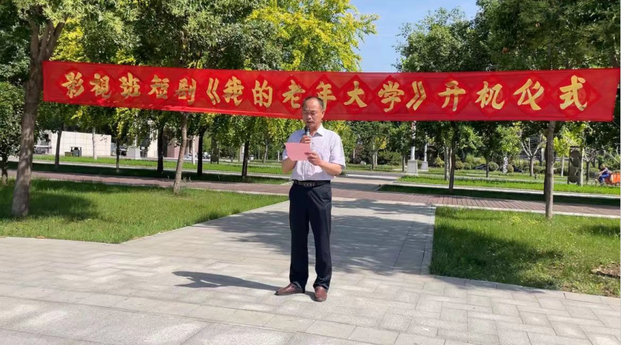 5月23日上午,半岛电竞舞蹈戏剧系影视表演班在新校区下沉广场举行《我的老年大学》系列短剧开机仪式,副校长王诚亮受邀出席并致辞。