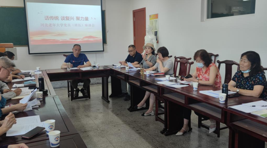 学员管理处处长刘东辉依次介绍了参加本次座谈的各教学班党员(班长)。王诚亮通报了《中共河北省委老干部局关于组织开展“话传统、谈复兴、聚力量”专题调研活动的通知》。随后,各教学班党员(班长)结合个人、家庭、社会、国家的发展变化,畅谈新时代和新形势下,以习近平同志为核心的党中央团结带领各族人民进行伟大斗争、建设伟大工程、推进伟大事业、实现伟大梦想,推动党和国家事业取得的全方位、开创性历史成就,抒发对党和国家的热爱,并就我校突出政治引领、加强思想建设、创新教学模式、优化学制设计、提高学员服务水平、“游学养”课程改进方向交流发言。